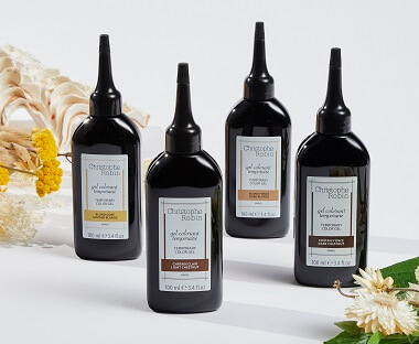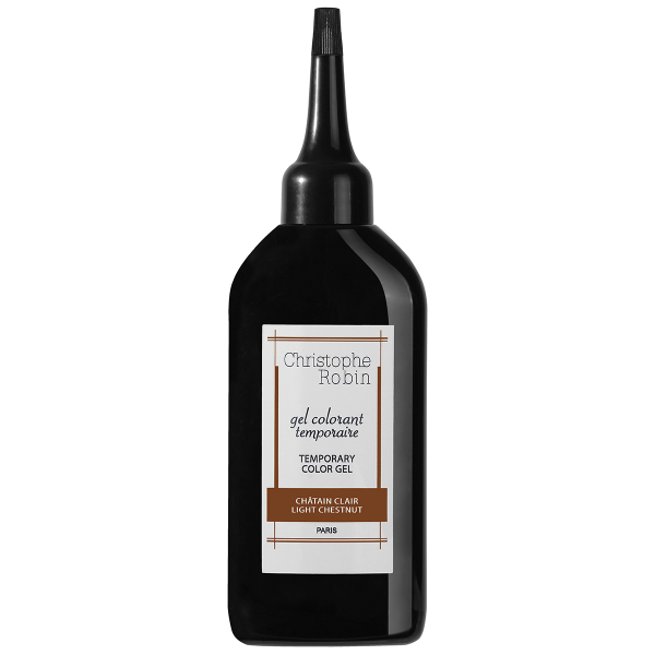 Christophe Robin’s Temporary Colour Gels provide temporary colour to hair that washes out evenly over 5-7 shampoos. It is an effective solution for those who wish to cover their greys without changing the colour or texture of their hair. The colour gel range consists of temporary colour for Dark Chestnut, Light Chestnut, Dark Blonde and Golden Blonde. They come with a small applicator brush for root application, or they can be applied all over for full coverage. The colour gels deposit colour while adding luminosity to strands.